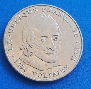 Subject: The coin features a portrait of Voltaire, a renowned French poet, writer, and philosopher, along with his birth and death years (1694 and 1778).