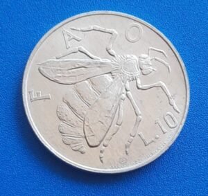Design: The reverse side of the coin depicts a honeybee, symbolizing the vital role these insects play in the ecosystem and possibly alluding to the wealth derived from peace, as San Marino has a long history of neutrality.