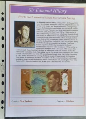 Recognized as one of the 100 most influential people of the 20th century by Time magazine, Hillary received many honors, including the Order of the Garter in 1995. Following his death in 2008, he was given a state funeral in New Zealand. His legacy is commemorated on New Zealand’s $5 banknote.